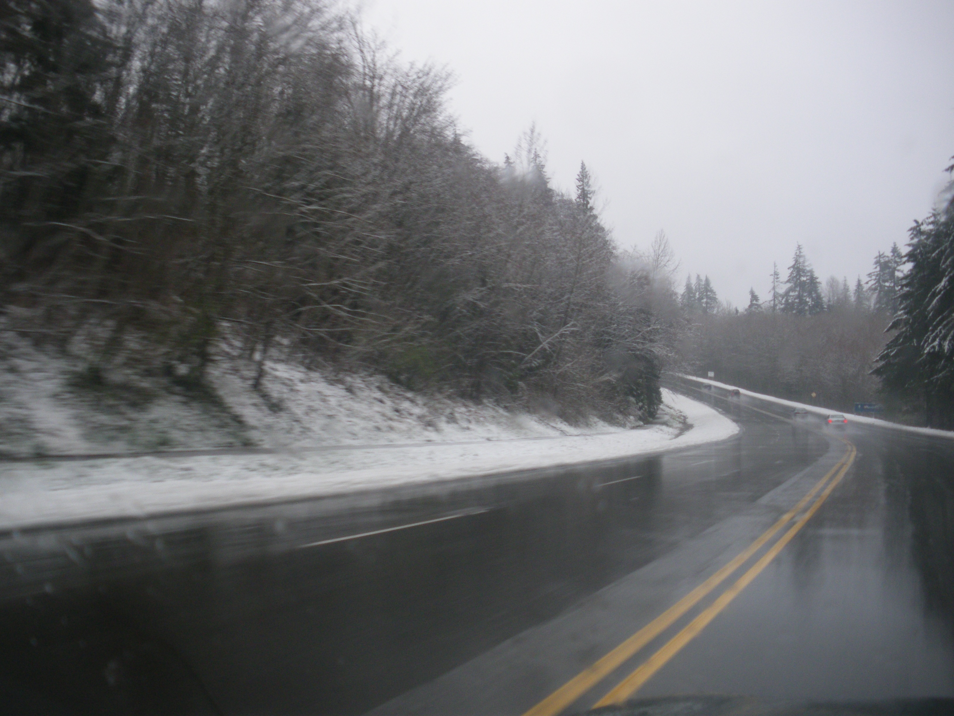 Snow in Vancouver, March 11th! Snow on the road to SFU.