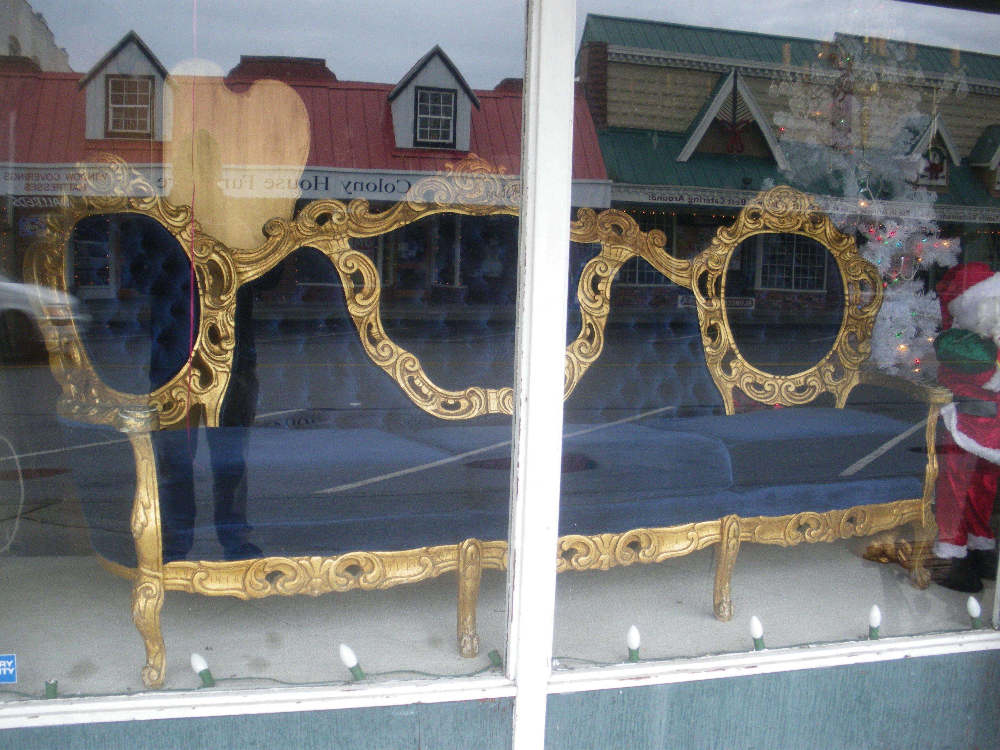 Blue gold antique couch. Spotted in Lynden, WA.